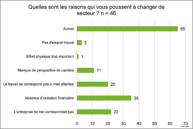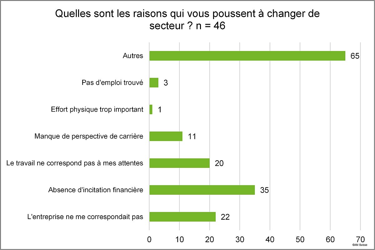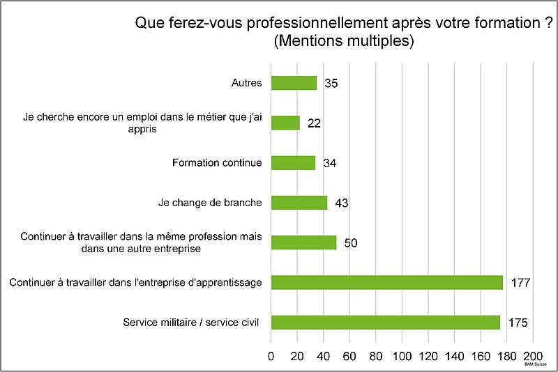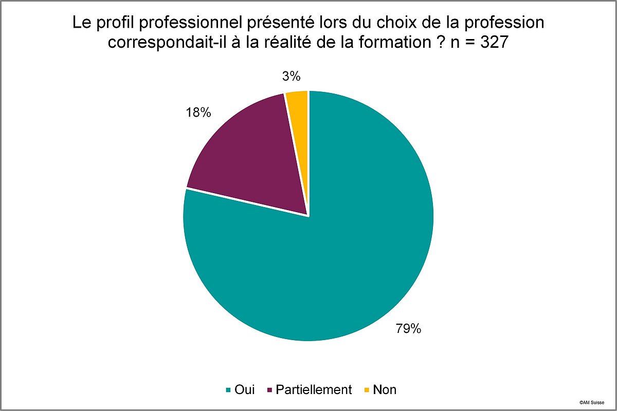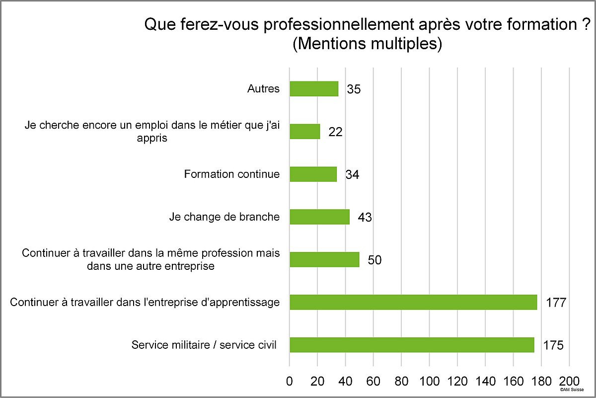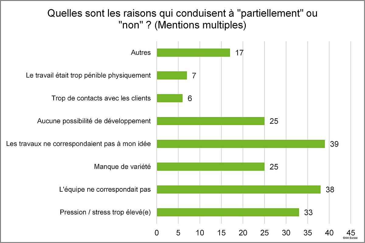 e choix d’un métier fait l’objet de nombreuses discussions au sein. de la famille, avec les proches et les connaissances. Après le stage de pré-apprentissage, il s’agit du deuxième facteur d’influence dans le choix de la profession. L’enquête montre une fois de plus l’importance de l’équipe et de l’environnement social au travail. Les expériences positives pendant le stage de préapprentissage s’avèrent particulièrement importantes. Lors du choix de l’employeur, les futurs professionnel(le)s accordent une très grande importance au facteur humain et aux collègues de travail. La moyenne est ici de 3,69, sachant que quatre points correspondent à la mention « très satisfait ». Viennent ensuite l’image de l’entreprise et la proximité du domicile. La question relative aux possibilités de passerelle, qui obtient la valeur moyenne de 2,65 points, mérite également d’être mentionnée. Ce résultat montre que les jeunes professionnel(le)s réfléchissent très tôt à leur évolution professionnelle.